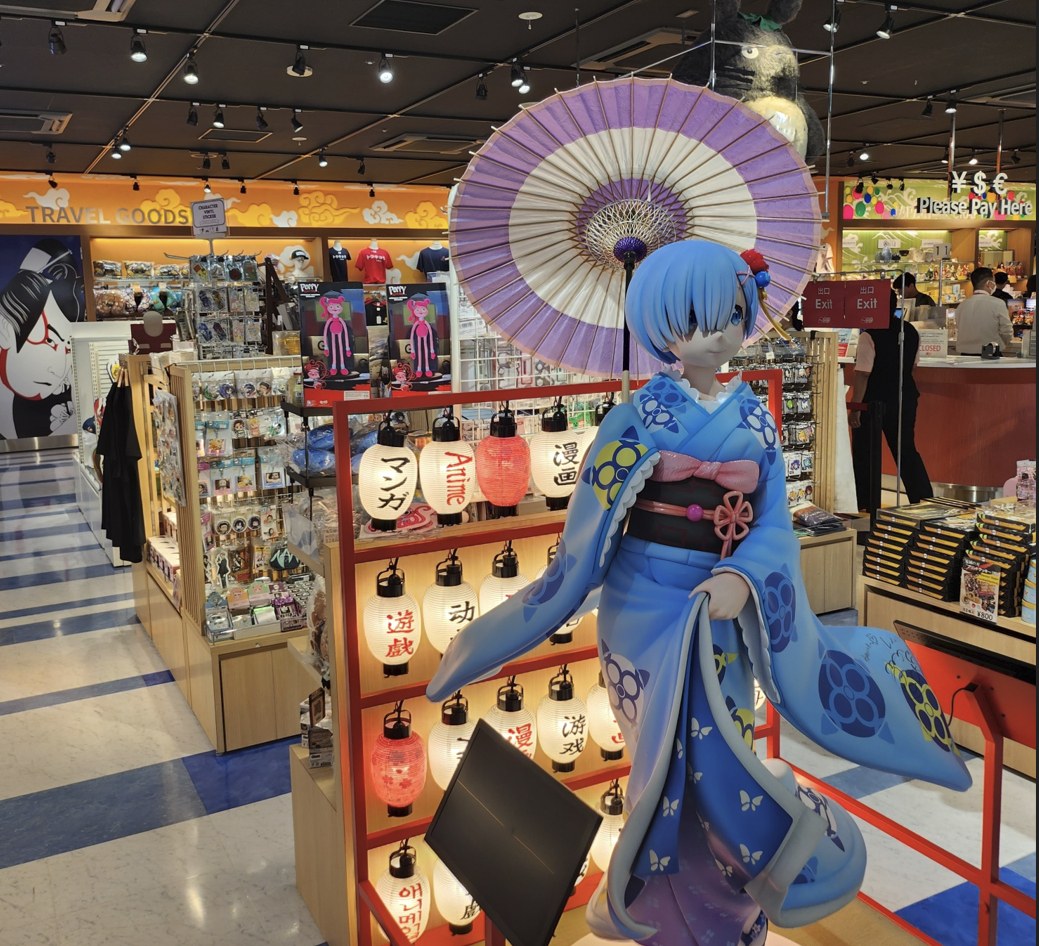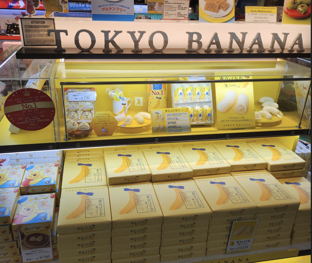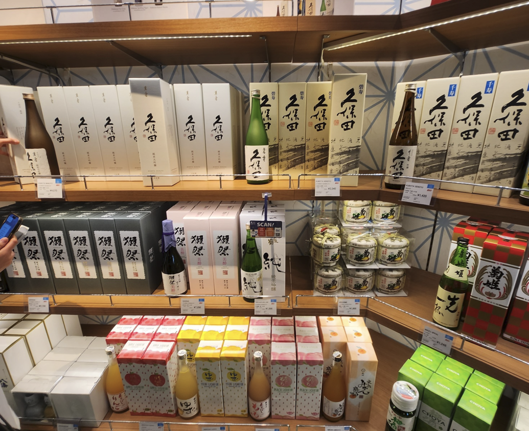여기서는 각종 피규어들과 사케(닷사이23, 39, 45, 준마이 등)이 있으며 특히 선물용으로 많이 사는 닷사이23은 7,200엔에 판매하고 있습니다. 또한 일본과자들을 볼 수 있는데 도쿄바나나와 시로이코이비토(일본의 쿠쿠다스)를 볼 수 있습니다.
